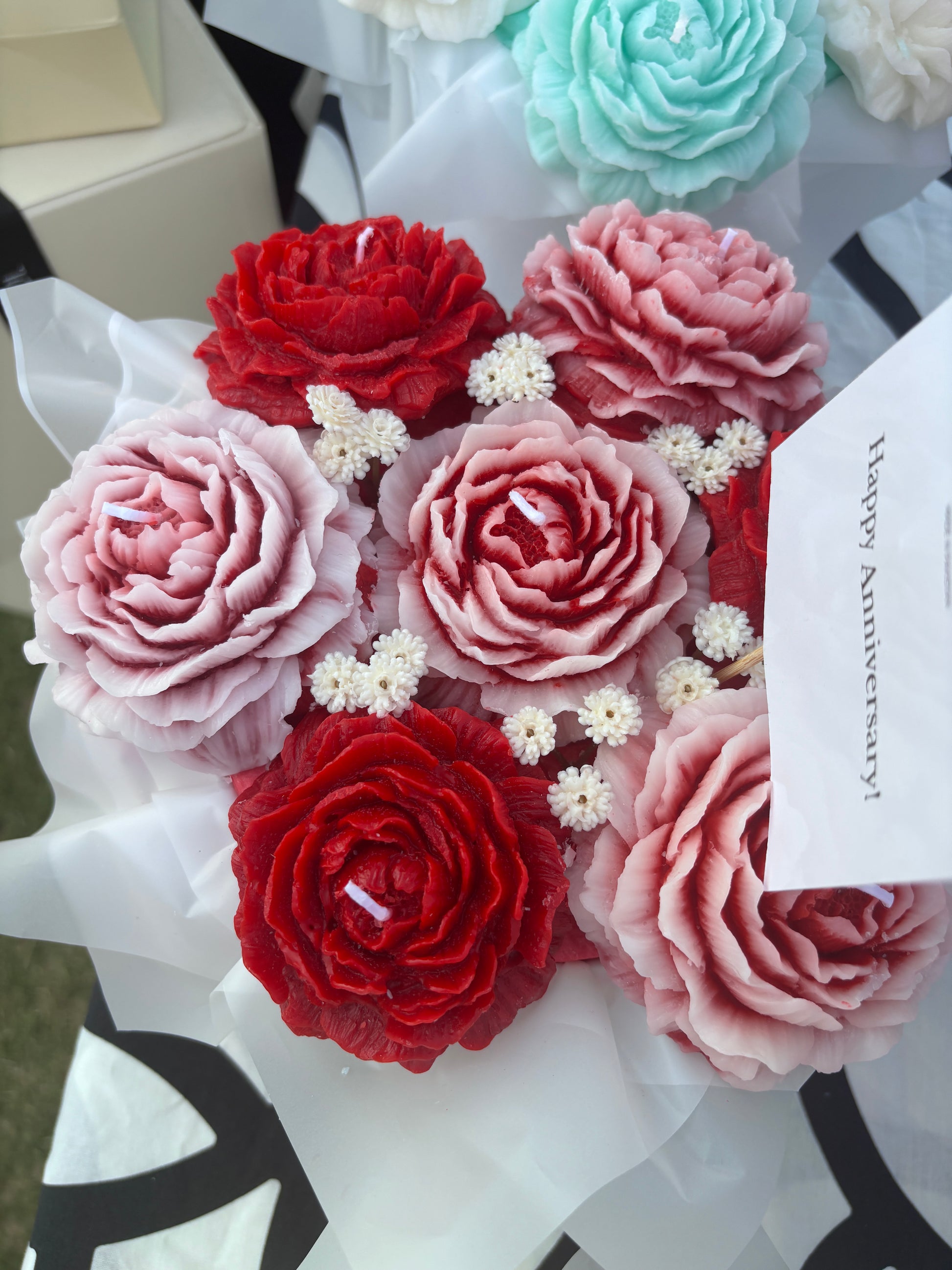We offer free delivery across Pakistan. Your candles will arrive in a beautifully designed package, weighing 2.5 kg, with a protective cylindrical box inside that keeps your bouquet perfectly in place.